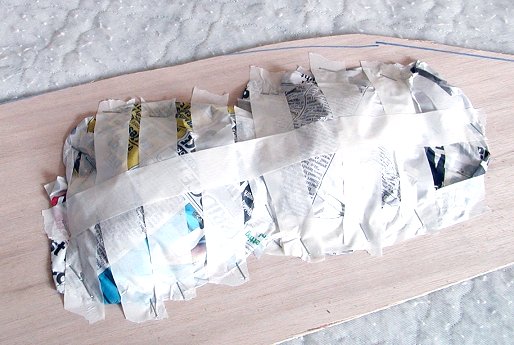 plywood, winding masking tape around it to keep it in place.. This was followed by plaster-impregnated gauze bandage, which we call in the UK (Modrock)