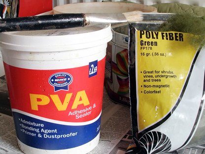 This one shows my whitewood glue, along with the poly-fiber also used for ground cover.