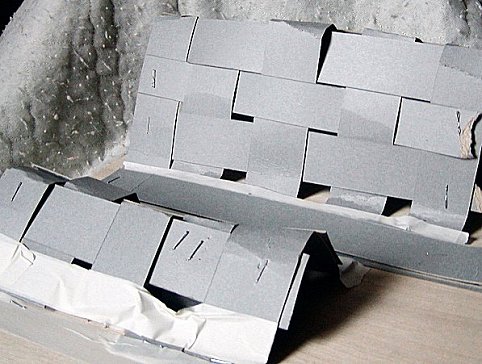 old tried and tested method of making mountains using interlaced card. The first photograph shows this card cut up into strips.