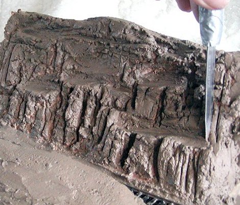 This to me is the fun part, carving the desired effect onto the wet plaster with a small knife.