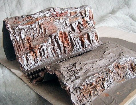 Here's the finished carving, also the track in place ready to be ballasted.