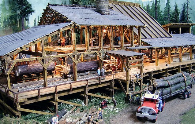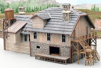 Well that’s it folks, how to make a true wood looking structure. I can tell you that the end results justify all the work involved. I can honestly say that I enjoy the challenge of scratchbuilding, whether it be from building a structure from a photograph or one I have made up and drawn up on the computer, whatever the case, It’s great fun, here's a few photo's of some of my scratchbuilt structures, all made exactly like the structure above. The only structure not done that way was the sawmill below, that was made using 1/4" timber for the main frame.