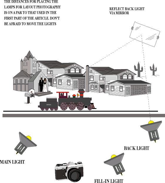 When photographing large area's of the layout, it is important to take a central point and focus in on this. When using the f-stop at 22 or 32, if you focus from the middle, then the object focused on, will be sharp, also in front of, and behind the subject is going to have some degree of sharpness, depending on how large an area you are photographing.