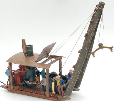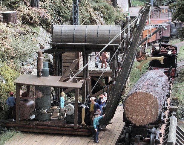 Here she is in place at the log pond, just about to unload a giant redwood.