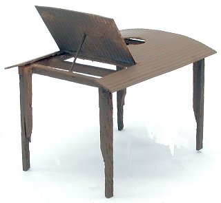 Once this was made, the roof was added using corrugated plastic sheet. A hole was cut for the boiler to fit